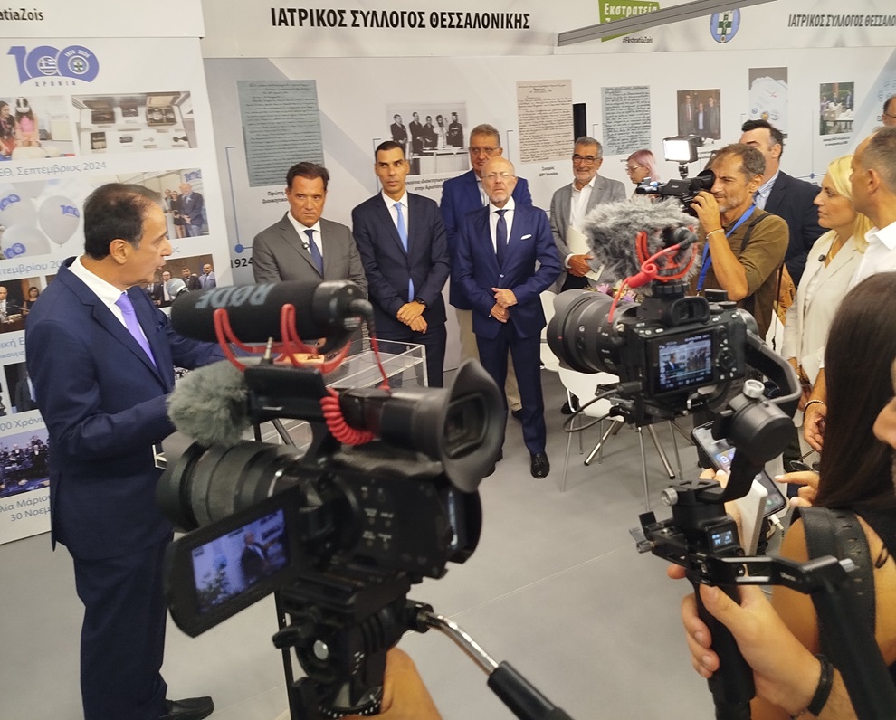 Το περίπτερο του Ιατρικού Συλλόγου Θεσσαλονίκης στην 89η ΔΕΘ εγκαινίασε ο υπουργός Υγείας, Άδωνις Γεωργιάδης, χαρακτηρίζοντάς το ως «το σημαντικότερο περίπτερο μετά αυτό του υπουργείου Υγείας». Ο δε πρόεδρος του ΙΣΘ Νίκος Νίτσας σημείωσε ότι τα προβλήματα του ιατρικού κλάδου έχουν τεθεί με υπόμνημα στον υπουργό Υγείας, παρουσία του πρωθυπουργού, ενώ αναφερόμενος σε μελέτες που αποδεικνύουν ότι το 2050 το 1/3 του πληθυσμού της Ελλάδας θα είναι άνω των 65 ετών, τόνισε ότι αυτό θα δημιουργήσει ιδιαίτερη πίεση στο ΕΣΥ και επανέλαβε το αίτημα του ΙΣΘ να δοθούν κίνητρα στους νέους γιατρούς ώστε να παραμείνουν στη χώρα. «Ένα από τα κίνητρα είναι το θέμα της αποζημίωσης για τη δεύτερη ειδικότητα. Θέλουμε και θεωρούμε υποχρέωση, αυτή τη στιγμή, της πολιτείας, εκτός από την επίλυση του δημογραφικού, να αναστρέψουμε και την έξοδο των νέων γιατρών από την Ελλάδα στο εξωτερικό», σημείωσε ο κ. Νίτσας.