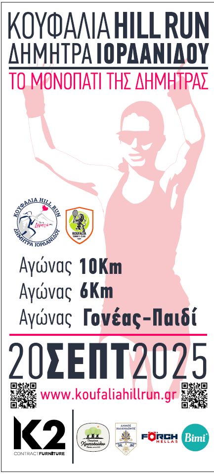 To Koufalia Hill Run - Δήμητρα Ιορδανίδου έρχεται για ακόμη μία φορά στα Κουφάλια σήμερα, Σάββατο (20/9) από τις 17:00 το απόγευμα έως τις 20:30 το βράδυ.