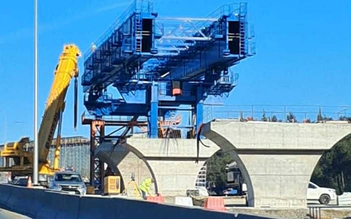Αυτό συμβαίνει την ώρα που το πρώτο καλούπι, το πορτοκαλί, βρίσκεται στο ανώτατο σημείο ρυθμού με τον οποίο γίνεται η σκυροδέτηση από κολώνα σε κολώνα, στην υπερυψωμένη γέφυρα.