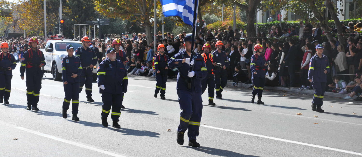 Οι Εθελοντές παρέλασαν με άψογο βηματισμό, πειθαρχία και σεμνότητα, αποσπώντας τα θερμά χειροκροτήματα των θεατών και την αναγνώριση των επισήμων. Στην παρέλαση παρουσιάστηκε και ο πυροσβεστικός στόλος οχημάτων, που αποτελεί μέρος του εξοπλισμού που διαθέτει η Πολιτική Προστασία του Δήμου.