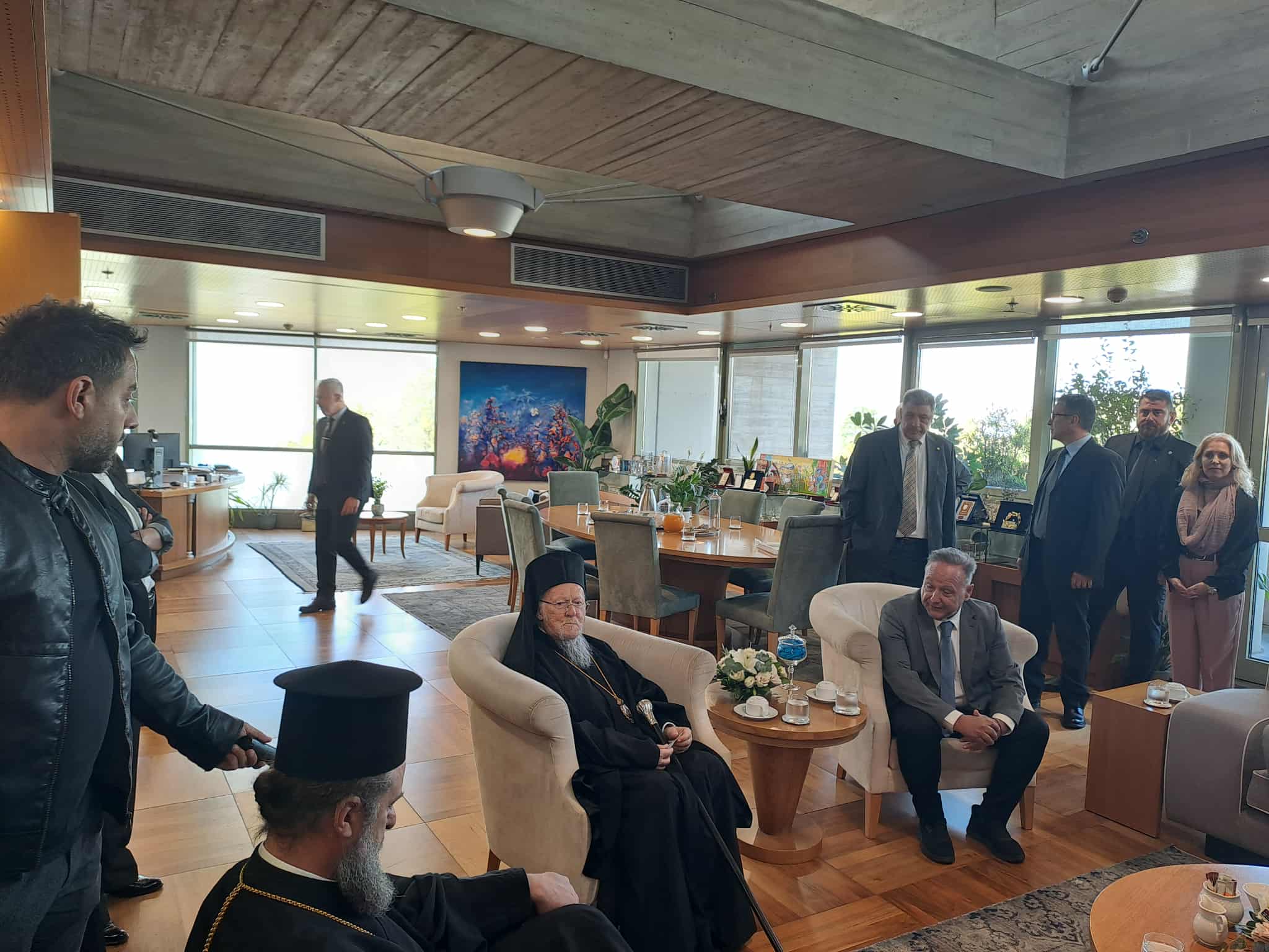 Έπειτα, τόσο ο κ. Αγγελούδης όσο και ο κ. Βαρθολομαίος, πραγματοποίησαν κλειστή συνάντηση στο γραφείο του δημάρχου, στην οποία συμμετείχε ο Μητροπολίτης Θεσσαλονίκης Φιλόθεος, ο πρόεδρος του Δημοτικού Συμβουλίου, Σπύρος Βούγιας, ο επικεφαλής της μείζονος αντιπολίτευσης, Κωνσταντίνος Ζέρβας και ο εντεταλμένος δημοτικός σύμβουλος και πρόεδρος του Δημοτικού Βρεφοκομείου «Ο Άγιος Στυλιανός», Δρόσος Τσαβλής.