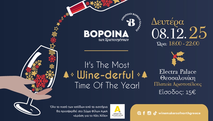 Τη Δευτέρα 8 Δεκεμβρίου οι «Οινοποιοί Βορείου Ελλάδος» ενώνουν τις δυνάμεις τους για την πιο λαμπερή οινική εκδήλωση της χρονιάς, συνδυάζοντας τον αυθεντικό χαρακτήρα του επώνυμου ελληνικού οίνου, στο βάθος του χρόνου και στην εξέλιξή του, με το πνεύμα και τη χαρά της προσφοράς.
