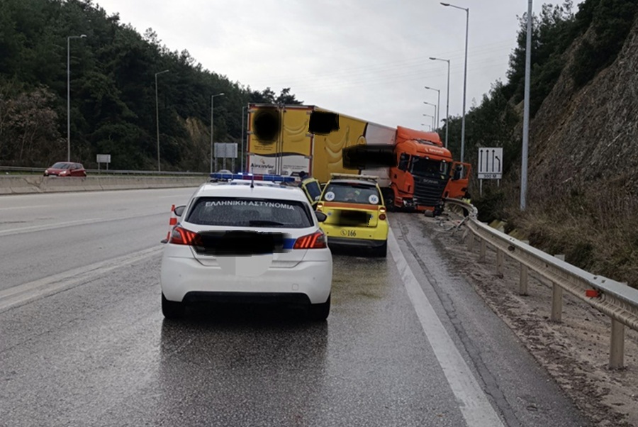 Από το τροχαίο δεν προκλήθηκε τραυματισμός και η νταλίκα έχει μεταφερθεί στην άκρη του δρόμου, με την κυκλοφορία να διεξάγεται αυτή την ώρα κανονικά.
