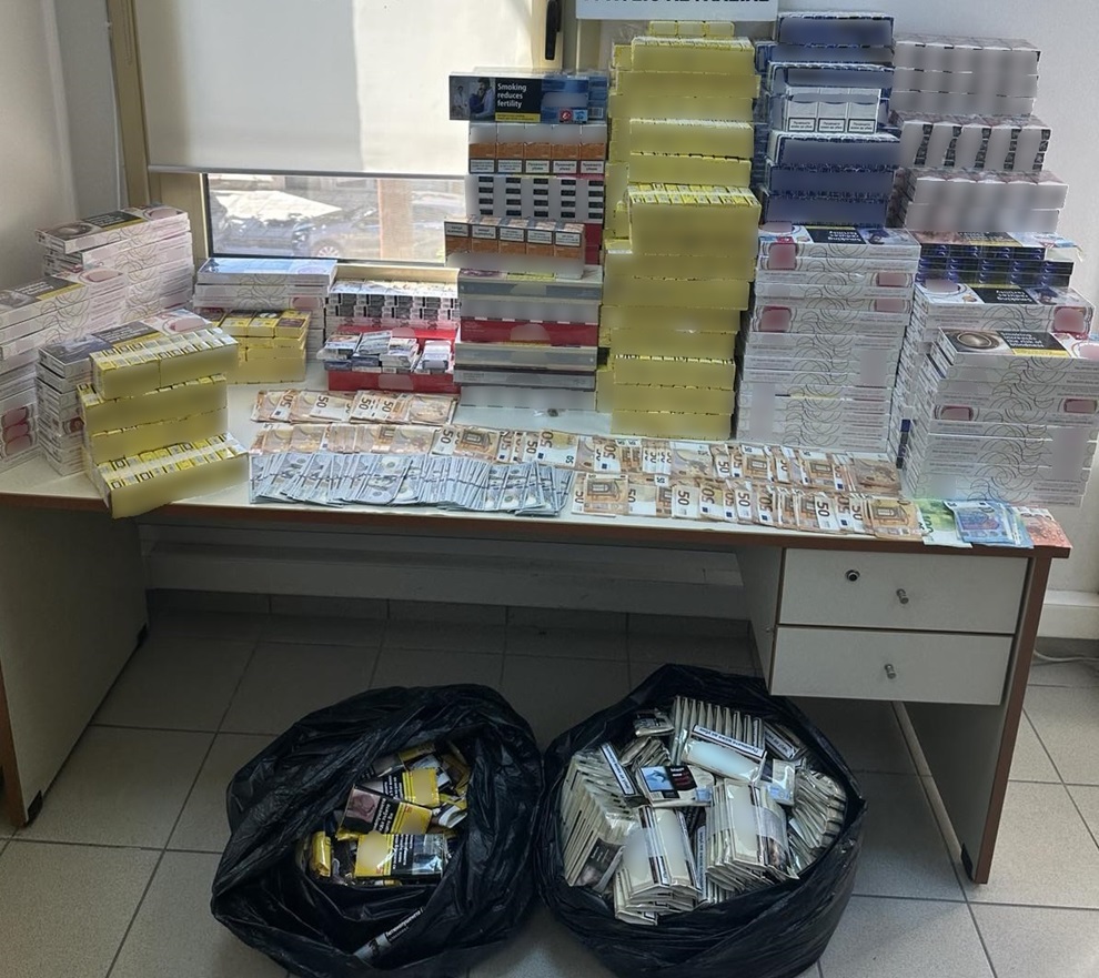 Ειδικότερα, μετά από συντονισμένες ενέργειες των αστυνομικών, εντοπίστηκε ο προαναφερόμενος άνδρας σε περιοχή της Θεσσαλονίκης και σε έρευνα που έγινε σε οικία και αποθήκη που χρησιμοποιούσε, βρέθηκαν και κατασχέθηκαν περισσότερα από 2.800 πακέτα τσιγάρων και συσκευασίες καπνού συνολικού βάρους 18,1 κιλών, τα οποία δεν έφεραν την ειδική ταινία φόρου κατανάλωσης και δεν είχαν καταβληθεί οι νόμιμοι φόροι και δασμοί.