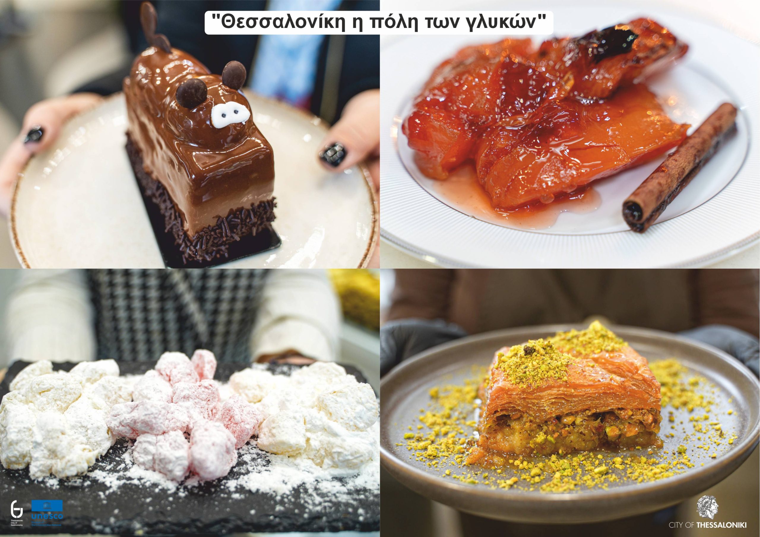 - 12:30 –Παρουσίαση του λογότυπου Thessaloniki UNESCO City of Gastronomy με «Γλυκιές μπουκιές» από το ζαχαροπλαστείο Αλεξούδας