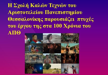 Η εκδήλωση, αφιερωμένη στην παρουσίαση του πολυποίκιλου έργου της ΣΚΤ του ΑΠΘ θα πραγματοποιηθεί την ερχόμενη Δευτέρα, στις 10 το πρωί, στην Αίθουσα Τελετών του ΑΠΘ. Πραγματοποιείται στο πλαίσιο του εορτασμού των 100 χρόνων λειτουργίας του Αριστοτέλειου, όπου δίνεται μία ημέρα σε κάθε σχολή για να παρουσιάσει το έργο της.