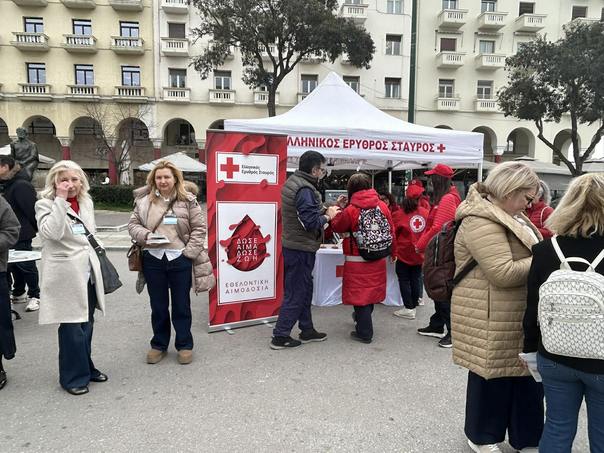 Από νωρίς το πρωί, η πλατεία Αριστοτέλους γέμισε ζωντάνια, καθώς μαθητές και εκπαιδευτικοί συμμετέχουν σε δράσεις για την κοινωνική προσφορά.