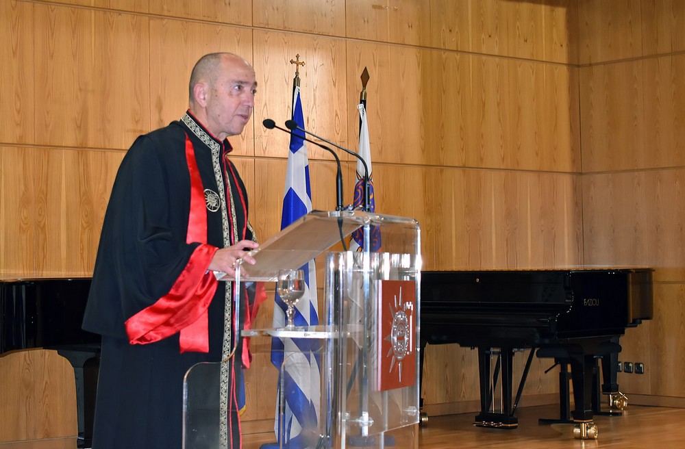 Στη συνέχεια, τον πανηγυρικό της ημέρας εκφώνησε ο Θεοχάρης Αναγνωστόπουλος, επισκέπτης επίκουρος καθηγητής στην Επώνυμη Έδρα Διδασκαλίας και Έρευνας στις Μικρασιατικές Σπουδές, του Τμήματος Βαλκανικών, Σλαβικών και Ανατολικών Σπουδών της Σχολής Οικονομικών και Περιφερειακών Σπουδών του Πανεπιστημίου Μακεδονίας.