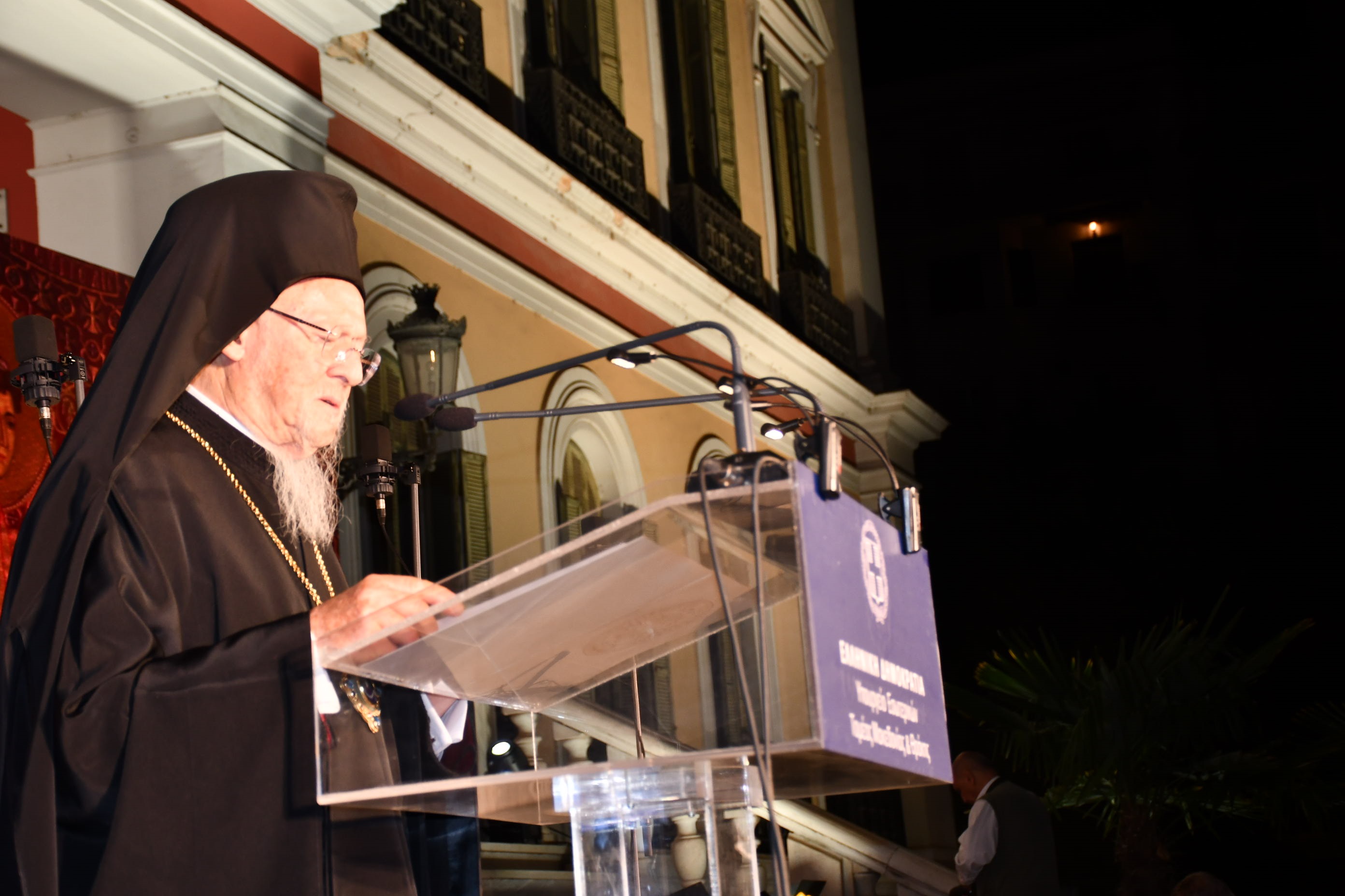 «Σας υποδεχόμαστε όχι μόνο ως Προκαθήμενο της Ορθοδοξίας αλλά ως Πατριάρχη του Γένους των Ελλήνων. Σε μέρες δύσκολες και ταραγμένες ήρθατε να κηρύξετε τον λόγο της αγάπης και της ειρήνης, να φωτίσετε τα σκοτάδια μας», κατέληξε ο Υφυπουργός Εσωτερικών.