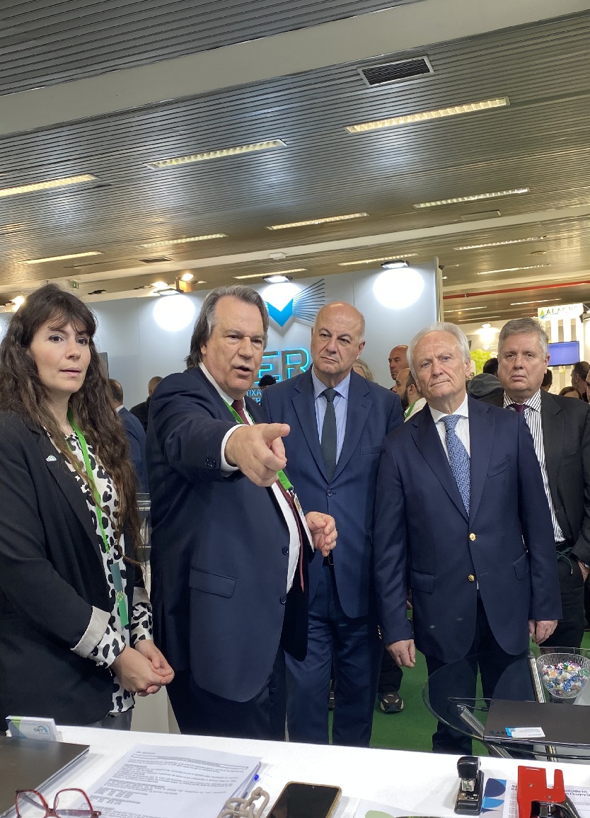 Το stand της εταιρείας ΟΕΤ, του Κέντρου Αριστείας COPE-Nano και του Συνδέσμου Επιχειρήσεων HOPE-A επισκέφθηκε ο υπουργός Αγροτικής Ανάπτυξης και Τροφίμων Κώστας Τσιάρας συνοδευόμενος από τον υφυπουργό Γιάννη Ανδριανό και στελέχη του υπουργείου. Ο υπουργός ενημερώθηκε διεξοδικά για τα πλεονεκτήματα των οργανικών φωτοβολταϊκών που κατασκευάζονται στην Ελλάδα και εξασφαλίζουν τριπλή χρήση γης, εξοικονομώντας ενέργεια, νερό και αυξάνοντας την παραγωγή.