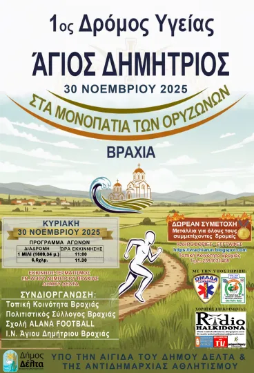Ο αγώνας θα διεξαχθεί την Κυριακή 30 Νοεμβρίου 2025, με σημείο εκκίνησης και τερματισμού τον αύλειο χώρο του Ιερού Ναού Αγίου Δημητρίου Βραχιάς Δήμου Δέλτα.