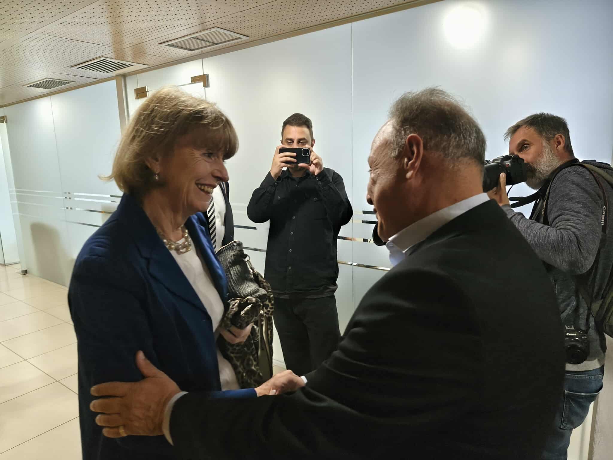 Συνοδεία της Γενικής Προξένου της Γερμανίας στην Θεσσαλονίκη, Monica Frank κατέφτασε στο δημαρχείο η κ. Reker, με τον Στέλιο Αγγελούδη και τον πρόεδρο του δημοτικού συμβουλίου Θεσσαλονίκης, Σπύρο Βούγια, να τις υποδέχονται σε θερμό κλίμα.
