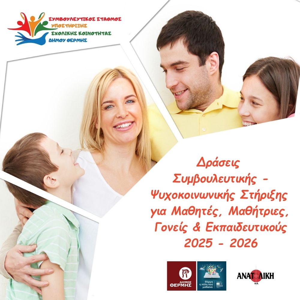 Η 𝚫𝛊𝛆ύ𝛉𝛖𝛎𝛔𝛈 𝚷𝛂𝛊𝛅𝛆ί𝛂ς, 𝚴𝛆𝛐𝛌𝛂ί𝛂ς, 𝚫𝛊𝛂 𝚩ί𝛐𝛖 𝚳ά𝛉𝛈𝛔𝛈ς 𝛋𝛂𝛊 𝚨𝛑𝛂𝛔𝛘ό𝛌𝛈𝛔𝛈ς 𝛕𝛐𝛖 𝚫ή𝛍𝛐𝛖 𝚯έ𝛒𝛍𝛈ς , σε συνεργασία με την 𝚨𝚴𝚨𝚻𝚶𝚲𝚰𝚱𝚮 𝚨.𝚬., Αναπτυξιακό Οργανισμό Τοπικής Αυτοδιοίκησης, ανακοινώνει την έναρξη των δράσεων του προγράμματος «Συμβουλευτικός Σταθμός Υποστήριξης Σχολικής Κοινότητας» για το σχολικό έτος 2025–2026.