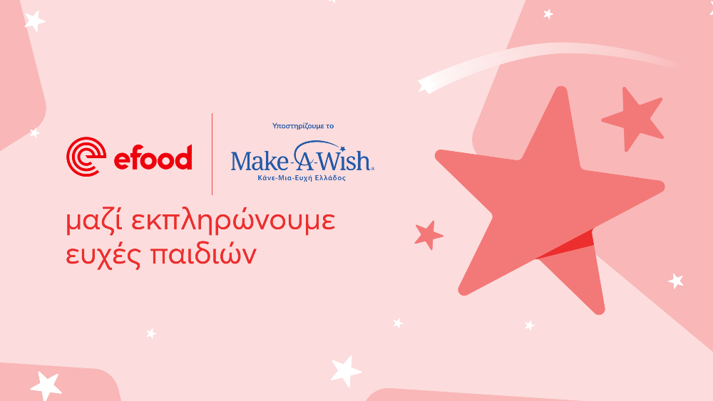 Μπες κι εσύ στην εφαρμογή του efood και στήριξε το έργο του Make-A-Wish Ελλάδος. Κάθε δωρεά μας φέρνει πιο κοντά στην πραγματοποίηση μιας ακόμη παιδικής ευχής.