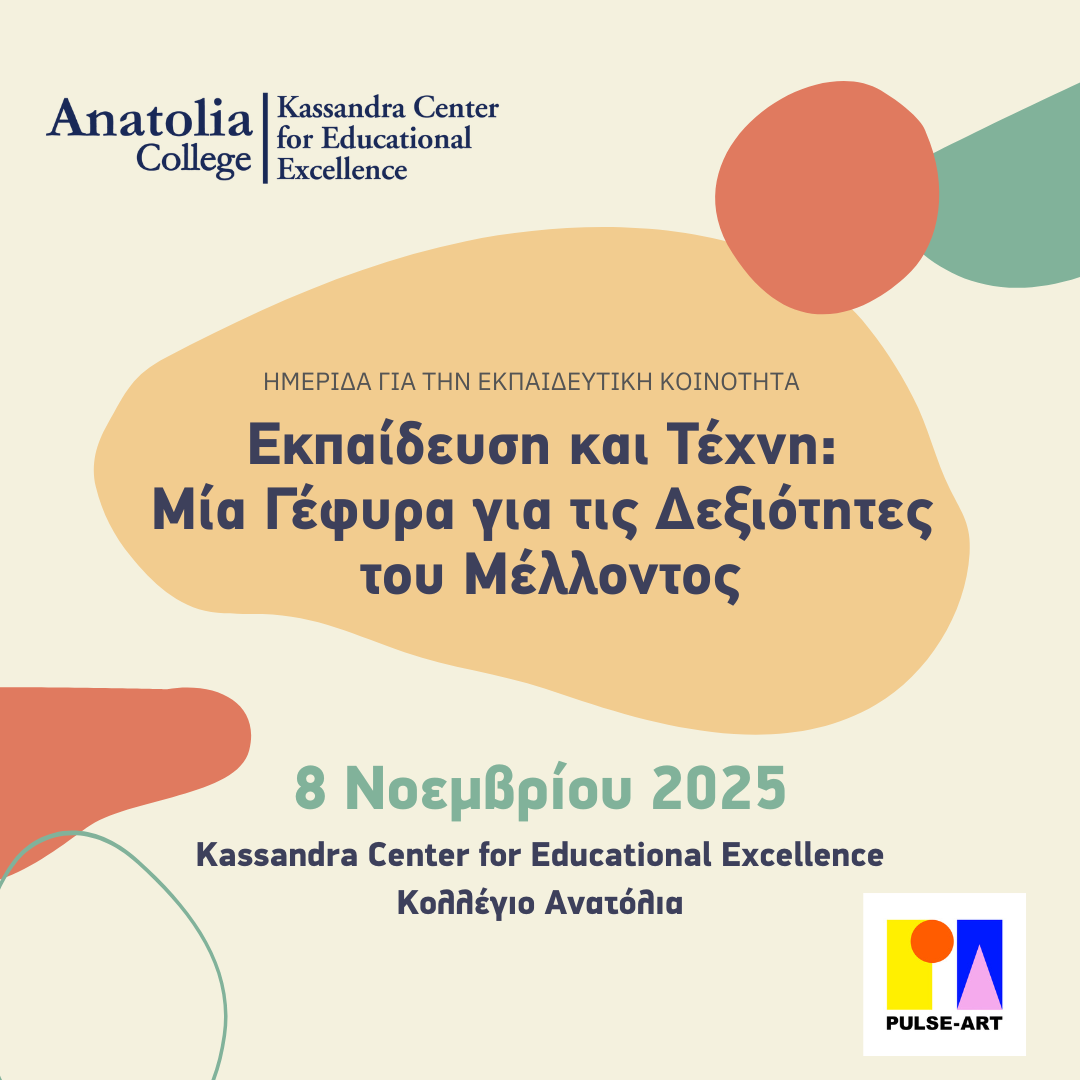 Την ημερίδα διοργανώνει το Kassandra Center for Educational Excellence - Κέντρο Εκπαιδευτικής Αριστείας του Κολλεγίου Ανατόλια, το Σάββατο 8 Νοεμβρίου 2025, από τις 9:00 π.μ. έως τις 14:30, στις εγκαταστάσεις του Κέντρου στο Κολλέγιο Ανατόλια.