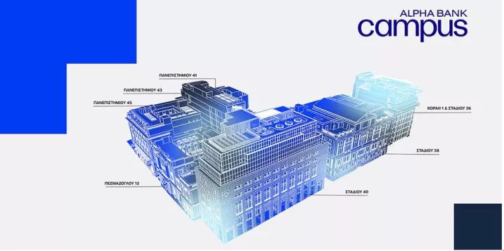 Έναν χώρο ανοιχτό στη συνεργασία, την καινοτομία και τον ουσιαστικό διάλογο με την αγορά, την κοινωνία και την πόλη της Αθήνας. Το Αlpha Bank Campus δεν αποτελεί απλώς την έδρα μας. Είναι ο χώρος όπου ενισχύουμε ακόμη περισσότερο τη στήριξή μας προς την επιχειρηματικότητα, αναπτύσσουμε νέες στρατηγικές συνεργασίες και οικοδομούμε σχέσεις εμπιστοσύνης με τους πελάτες μας, συμβάλλοντας παράλληλα στη ζωντάνια και την ανανέωση του ιστορικού κέντρου της πόλης.