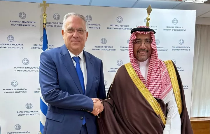 Συγκεκριμένα, το πρωί υπήρξε συνάντηση με τη Σαουδαραβική αντιπροσωπεία στο υπουργείο Ανάπτυξης σε ιδιαίτερα θετικό και παραγωγικό κλίμα. Εξετάστηκαν αναλυτικά οι δυνατότητες περαιτέρω εμβάθυνσης της στρατηγικής συνεργασίας Ελλάδας - Σαουδικής Αραβίας, στην προσέλκυση σημαντικών επενδύσεων και τη διευκόλυνση της επιχειρηματικής δραστηριότητας και στις δύο χώρες, με έμφαση στη ναυπηγική βιομηχανία, στη φαρμακοβιομηχανία, στην αγροδιατροφή και στις κατασκευές. Στη συνάντηση συμμετείχαν επίσης η Γ.Γ. Ιδιωτικών Επενδύσεων, Στελλίνα Σιαράπη, ο Γ.Γ. Βιομηχανίας, Λευτέρης Κρητικός, η Πρέσβης, Κατερίνα Βαρβαρήγου και ο Πρέσβης της Σαουδικής Αραβίας στην Ελλάδα, Ali Abdulrahman Bin Yousef.