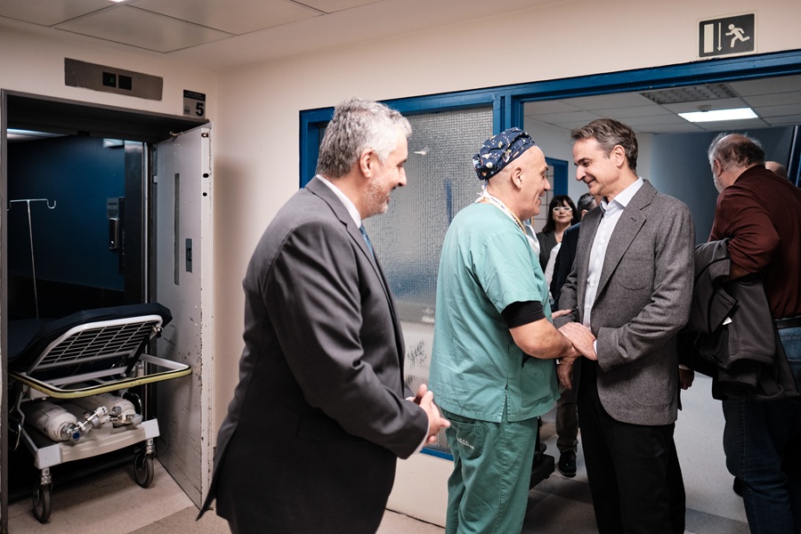 Ο πρωθυπουργός, συνοδευόμενος από τον υπουργό Υγείας Άδωνι Γεωργιάδη και τον υφυπουργό Μάριο Θεμιστοκλέους, είχε την ευκαιρία να δει τις πλήρως ανακαινισμένες, υπερσύγχρονες χειρουργικές αίθουσες και να συνομιλήσει με εργαζόμενους και ασθενείς.