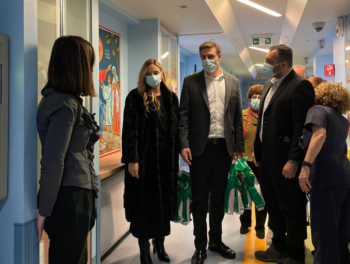 Στο ίδιο πλαίσιο, πραγματοποιήθηκε επίσκεψη των Συντονιστών του Γραφείου στο Ογκολογικό Παιδιατρικό Τμήμα του Ιπποκράτειου Νοσοκομείου Θεσσαλονίκης. Κατά τη διάρκεια της επίσκεψης, παρέδωσαν επιτραπέζια παιχνίδια στα παιδιά και αντάλλαξαν ευχές με το ιατρικό και νοσηλευτικό προσωπικό, καθώς και με τις οικογένειες των μικρών ασθενών, εκφράζοντας τη στήριξη και την αλληλεγγύη τους και μεταφέροντας μηνύματα δύναμης και αισιοδοξίας.