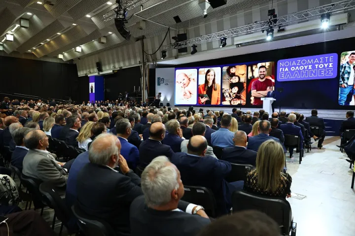Έξω από το συνεδριακό κέντρο τον υποδέχθηκαν με χειροκροτήματα στελέχη, μέλη και φίλοι της Νέας Δημοκρατίας, ανάμεσά τους αρκετοί νέοι και νέες.