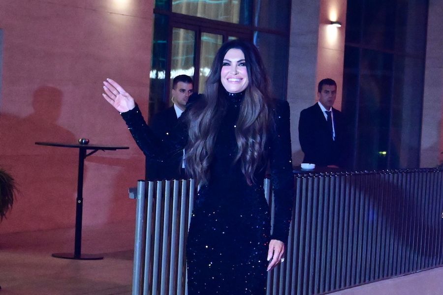 Στις πρώτες φωτογραφίες της, η Αμερικανίδα πρέσβης εμφανίστηκε χαμογελαστή μπροστά στα φλας των φωτογράφων, φορώντας ένα μακρύ μαύρο φόρεμα και χαιρετώντας τον κόσμο που είχε συγκεντρωθεί από το ξενοδοχείο στη λεωφόρο Συγγρού.