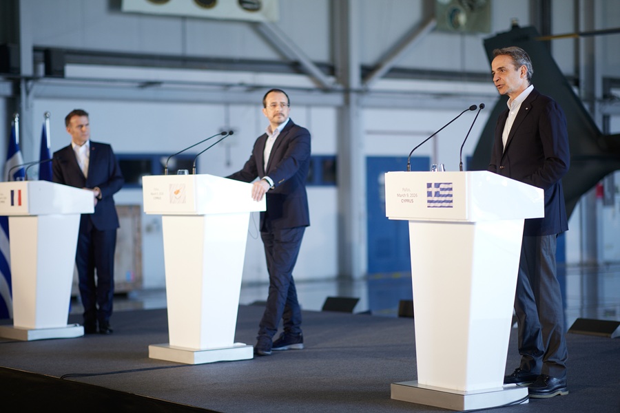 Κατά τη διάρκεια της τριμερούς συνάντησης του Κυριάκος Μητσοτάκης, του Νίκος Χριστοδουλίδης και του Εμανουέλ Μακρόν, σύμφωνα με κυβερνητικές πληροφορίες, συζητήθηκαν οι τελευταίες εξελίξεις στο Ιράν και στη Μέση Ανατολή.