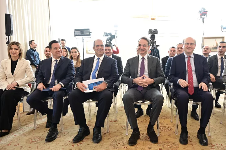 Ο πρωθυπουργός Κυριάκος Μητσοτάκης μιλάει στην εκδήλωση για τη δωρεά του Φιλανθρωπικού Ιδρύματος Στέλιος Χατζηιωάννου στο Εθνικό Σύστημα Υγείας με σκοπό την οικονομική ενίσχυση ιατρών που υπηρετούν σε μικρά νησιά της χώρας με πληθυσμό κάτω των 4.000 κατοίκων κατά τη χειμερινή περίοδο.