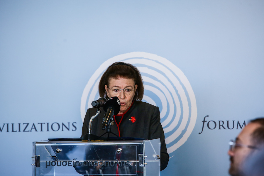 Στον χαιρετισμό της, η υπουργός υπογράμμισε ότι η Τεχνητή Νοημοσύνη αποτελεί ήδη καθοριστικό παράγοντα για τον Πολιτισμό, επισημαίνοντας: «Η Τεχνητή Νοημοσύνη δεν αποτελεί πλέον μια μακρινή υπόσχεση. Είναι ήδη πραγματικότητα και εξελίσσεται ταχύτατα σε παράγοντα που αναδιαμορφώνει και αναδιατάσσει εδραιωμένες σταθερές της Παιδείας και του Πολιτισμού».