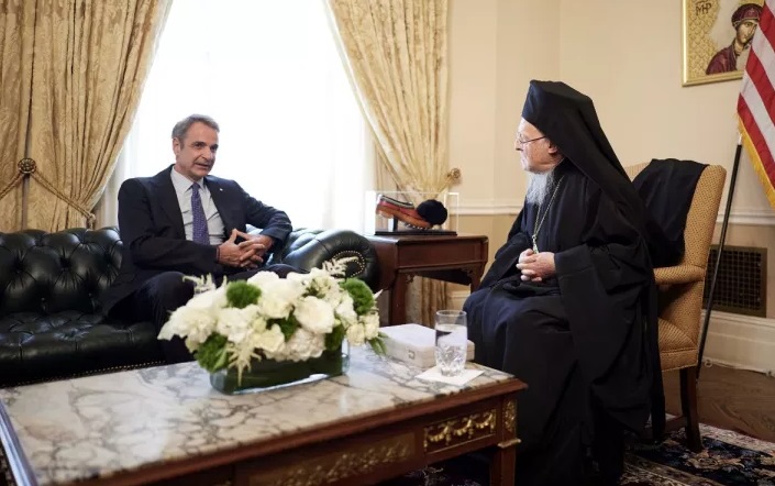 Κατ' ιδίαν συνάντηση με τον Οικουμενικό Πατριάρχη Βαρθολομαίο είχε ο πρωθυπουργός Κυριάκος Μητσοτάκης.