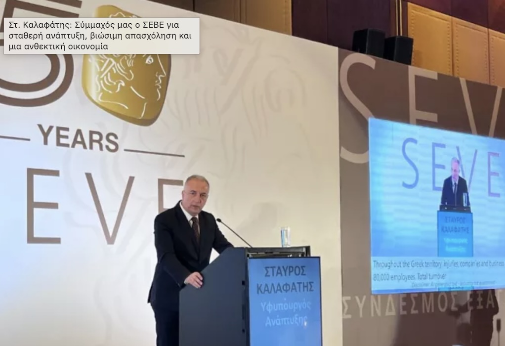 Ο κ. Καλαφάτης χαρακτήρισε τον ΣΕΒΕ «κορυφαίο εξαγωγικό φορέα της χώρας μας ο οποίος υπήρξε- και συνεχίζει να είναι- πυλώνας ανάπτυξης για τη Θεσσαλονίκη και την ευρύτερη περιοχή της Μακεδονίας», επισημαίνοντας ότι: «Σ΄όλη την ελληνική επικράτεια 800 εταιρείες και επιχειρηματικοί όμιλοι, 80 χιλιάδες εργαζόμενοι, συνολικός κύκλος εργασιών που υπερβαίνει τα 55 δισεκατομμύρια ευρώ και εξαγωγές που φθάνουν τα 30 δισεκατομμύρια ευρώ, δηλαδή το 50% των ελληνικών εξαγώγιμων αγαθών, δεν είναι μόνο αριθμοί». Όπως τόνισε: «Είναι η ζωντανή απόδειξη της Ελλάδας της εξωστρέφειας, της δημιουργίας, της καινοτομίας. O ΣΕΒΕ είναι πρωταγωνιστής αλλά και σύμμαχός μας στον κοινό αγώνα για σταθερή ανάπτυξη, για βιώσιμη απασχόληση, για μια ανθεκτική και δυναμική οικονομία», υπογράμμισε ο Υφυπουργός Ανάπτυξης.