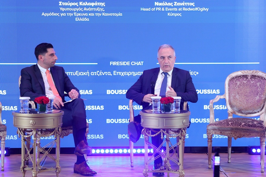 Αναφερόμενος στην εθνική στρατηγική έρευνας και καινοτομίας ο Υφυπουργός Ανάπτυξης επισήμανε ότι: “αποτελεί τον “οδικό χάρτη” μας για αυτήν την μετάβαση. Είναι το πλαίσιο μέσα στο οποίο κινούμαστε για να φέρουμε την έρευνα και την καινοτομία στο επίκεντρο της ανάπτυξης”. “Δεν θέλουμε έρευνα στα συρτάρια, θέλουμε έρευνα στην κοινωνία” επισήμανε ο κ. Καλαφάτης και πρόσθεσε ότι: “Ο ρόλος της είναι να θέτει σαφείς προτεραιότητες και στόχους: ποιους τομείς θεωρούμε στρατηγικούς για την Ελλάδα, πώς θα χρηματοδοτήσουμε την έρευνα, πώς θα συνδέσουμε τα πανεπιστήμια και τα ερευνητικά κέντρα με την οικονομία”. “Η στρατηγική αυτή επικαιροποιείται συνεχώς, ώστε να συμβαδίζει με τις εξελίξεις, για παράδειγμα με την τεχνητή νοημοσύνη, την πράσινη μετάβαση κα. Bασικός πυλώνας της είναι η σύνδεση της έρευνας με την επιχειρηματικότητα. Πάνω σ΄αυτό ήδη υλοποιούνται προγράμματα και νέες εμβληματικές δράσεις που έχουν στόχο ν΄αναπτύξουν τα οικοσυστήματα καινοτομίας σε κάθε περιφέρεια της χώρας. Με λίγα λόγια, η Εθνική Στρατηγική είναι παρούσα και ενεργή: μας παρέχει τη μεγάλη εικόνα και ταυτόχρονα επιβλέπει ότι τα βήματα που κάνουμε (νομοθετικά και χρηματοδοτικά) υπηρετούν το όραμα μιας Ελλάδας που πρωταγωνιστεί στην έρευνα και την καινοτομία”, υπογράμμισε ο Υφυπουργός Ανάπτυξης.