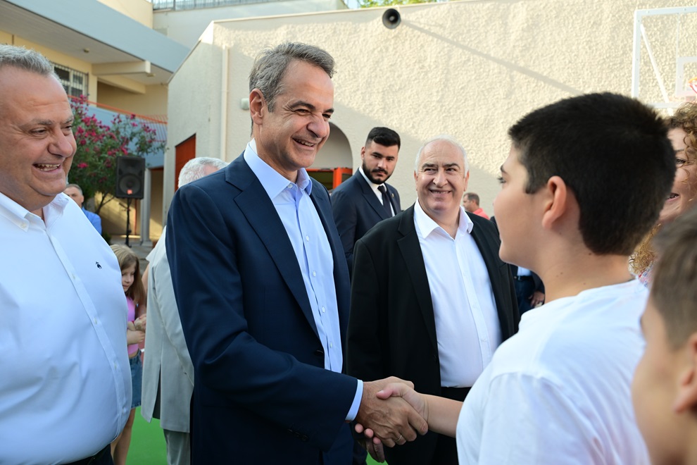 Ο κ. Μητσοτάκης ξεναγήθηκε από τη διευθύντρια του σχολείου στους ανακαινισμένους χώρους της εκπαιδευτικής μονάδας.