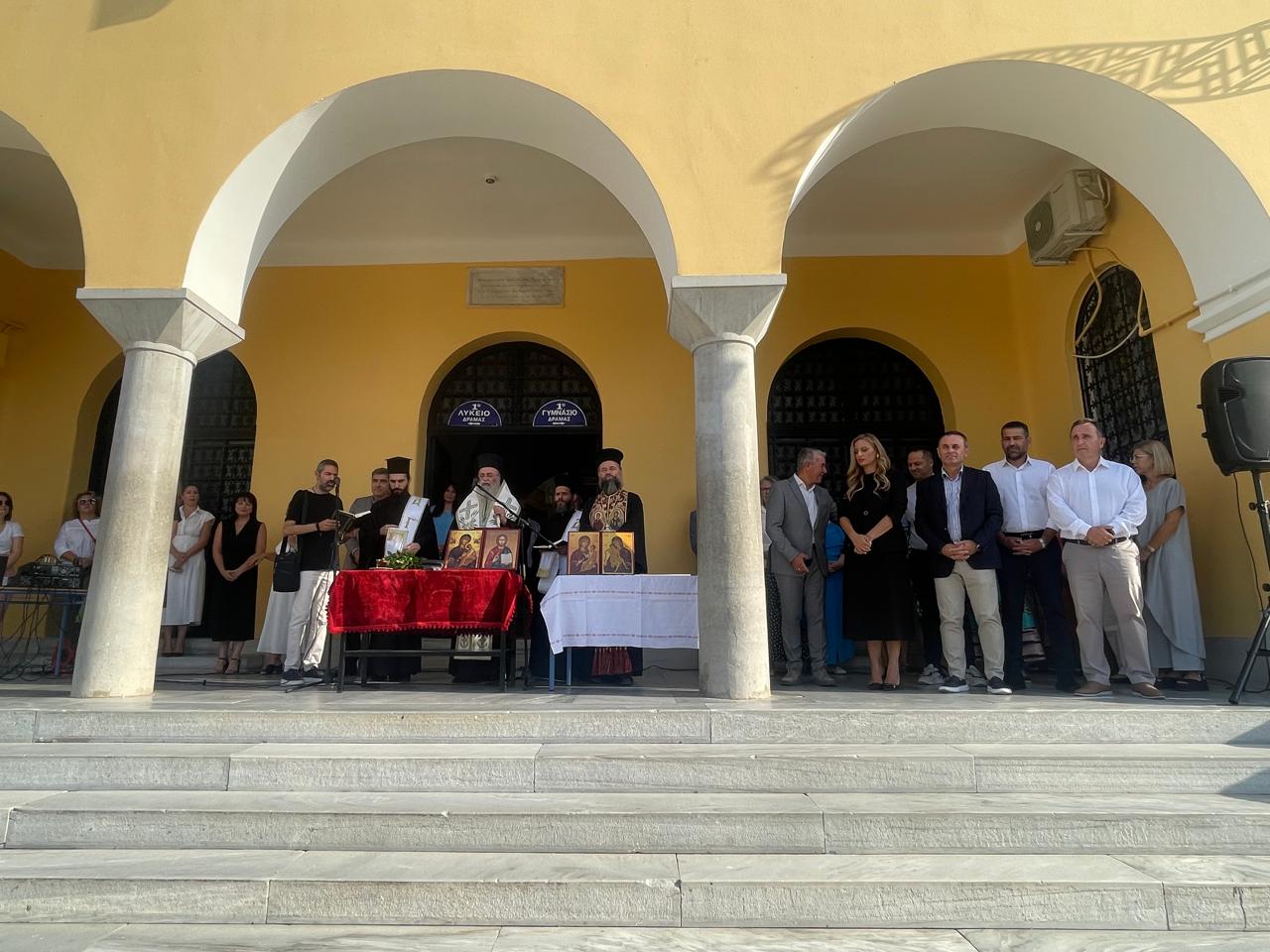 Τον αγιασμό στο 1ο Γυμνάσιο-Λύκειο Δράμας και στο Καλλιτεχνικό Γυμνάσιο Πετρούσας τέλεσε ο Σεβασμιώτατος Μητροπολίτης Δράμας Δωρόθεος. Κατά την ομιλία της, η κ. Σώκου αναφέρθηκε στις μεταρρυθμίσεις και στις κυβερνητικές ενισχύσεις στον τομέα της δημόσιας εκπαίδευσης. Τόνισε ότι επιπλέον 10.000 μόνιμοι εκπαιδευτικοί στελεχώνουν φέτος τα σχολεία, ενώ συνολικά την πενταετία 2020-2025 έχουν διοριστεί 48.653 εκπαιδευτικοί. Το δημόσιο σχολείο σημείωσε, ενισχύεται με ψυχολόγους και κοινωνικούς λειτουργούς, ενώ εξοπλίζεται με διαδραστικούς πίνακες, σετ ρομποτικής, STEM και νέα βιβλία Πληροφορικής, που περιλαμβάνουν γραμματισμό στην Τεχνητή Νοημοσύνη (ΑΙ). Παράλληλα, υπογράμμισε ότι έχουν ιδρυθεί νέες σχολικές μονάδες και έχουν ανακαινιστεί 431 σχολεία στο πλαίσιο του προγράμματος «Μαριέττα Γιαννάκου», με στόχο την ανακαίνιση συνολικά 2.500 σχολείων, ενώ ανοίγουν τις πόρτες τους 12 Ωνάσεια Δημόσια Σχολεία.