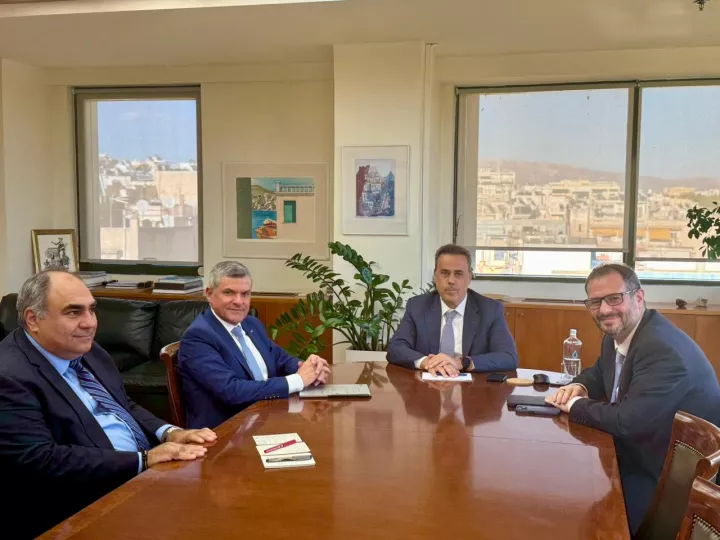 Πραγματοποιήθηκε σήμερα συνάντηση εργασίας μεταξύ του υπουργού Περιβάλλοντος και Ενέργειας, κ. Σταύρου Παπασταύρου και του υπουργού Ενέργειας, Εμπορίου και Βιομηχανίας της Κύπρου, κ. Γιώργου Παπαναστασίου, με θέμα την υλοποίηση της ηλεκτρικής διασύνδεσης Ελλάδας-Κύπρου GSI, παρουσία του Υυφυπουργού Περιβάλλοντος και Ενέργειας, κ. Νίκου Τσάφου και του πρέσβη της Κύπρου στην Ελλάδα, κ. Σταύρου Αυγουστίδη.