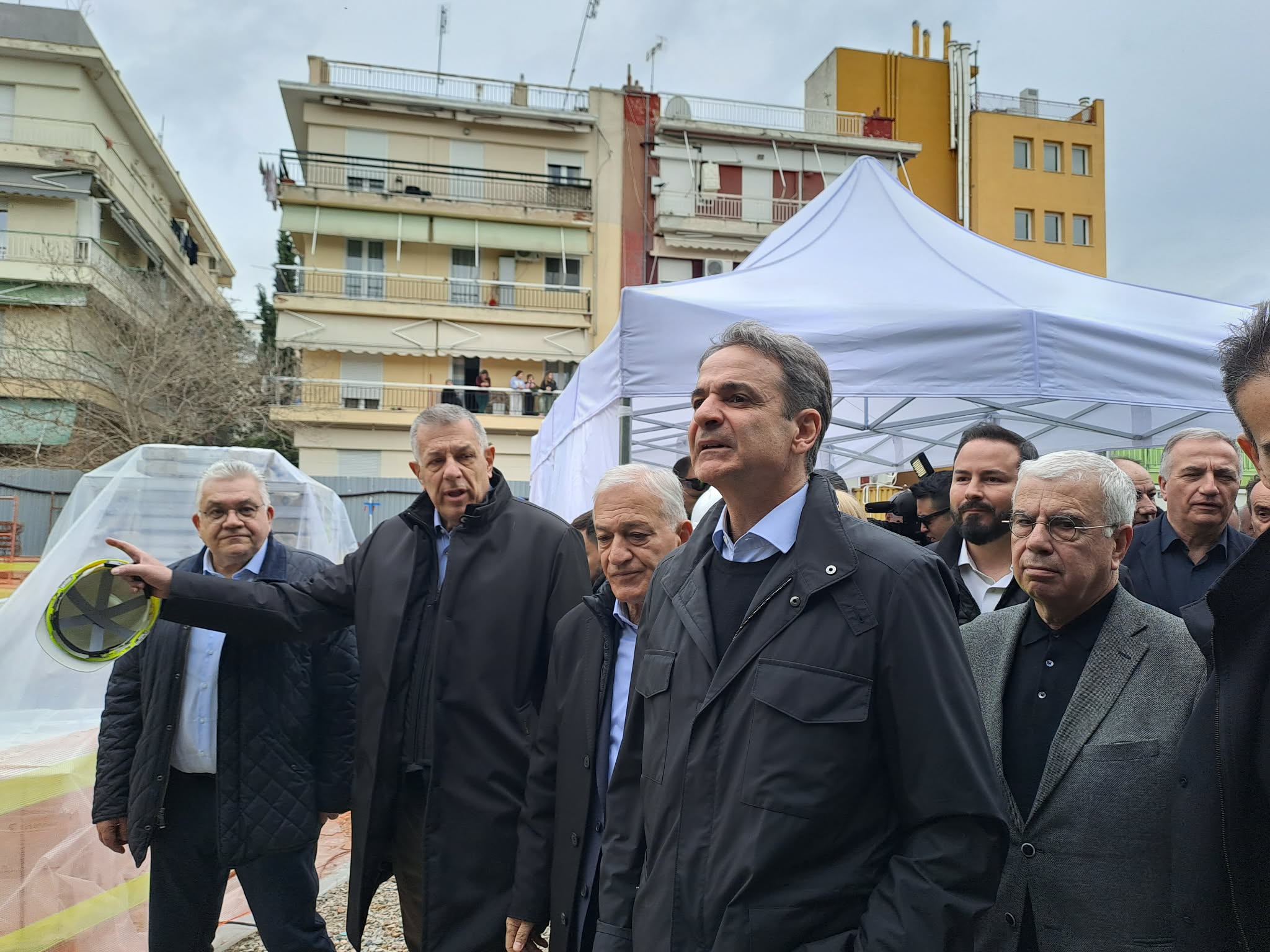 Αρκετός κόσμος από τη γύρω περιοχή βγήκε στα μπαλκόνια του προκειμένου να πάρει μια γεύση από την επίσκεψη του πρωθυπουργού. Ο ίδιος δεν δίστασε να τους χαιρετήσει και στους πιο μικρούς να τους ρωτήσει εάν τους αρέσει που χτίζεται ένα ολοκαίνουριο και σύγχρονο σχολείο στη γειτονιά τους.