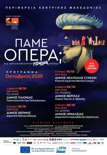Η επιλογή των πέντε Δήμων δεν έγινε τυχαία. Θέλαμε να φτάσουμε σε περιοχές της Περιφέρειας Κεντρικής Μακεδονίας που διαθέτουν πολιτιστική δραστηριότητα, τεχνική υποδομή, αλλά και διάθεση συνεργασίας. Η αποκέντρωση του πολιτισμού είναι βασική προτεραιότητα για εμάς: πιστεύουμε ότι η τέχνη δεν πρέπει να περιορίζεται στα μεγάλα αστικά κέντρα. Με το «Πάμε… Όπερα;» επιδιώκουμε ακριβώς αυτό — να «ταξιδέψει» η όπερα, να ακουστεί εκεί όπου σπάνια φτάνει, να δώσει σε μικρούς και μεγάλους την ευκαιρία να τη γνωρίσουν ζωντανά, χωρίς κόστος, χωρίς εμπόδια.
