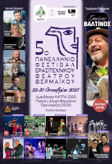 - ΠΕΜΠΤΗ 23/10/2025 | ΤΕΛΕΤΗ ΕΝΑΡΞΗΣ | Θεατρική Ομάδα «Φύρδην Μίγδην» Καλλιτεχνικής Σοφίτας Θερμαϊκού με το έργο «Βάτραχοι» του Αριστοφάνη, σε σκηνοθεσία Γιώτας Αλέξοπούλου (εκτός συναγωνισμού)