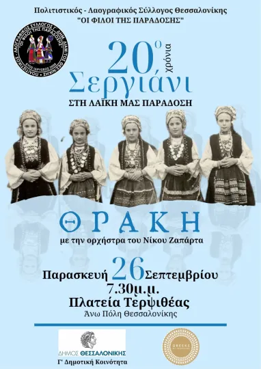 Ο Δήμος Θεσσαλονίκης και η Γ΄ Δημοτική Κοινότητα σε συνεργασία με τον Πολιτιστικό – Λαογραφικό Σύλλογο “Οι Φίλοι της Παράδοσης”, διοργανώνουν πολιτιστική εκδήλωση με τίτλο: «Σεργιάνι στη Λαϊκή μας Παράδοση».