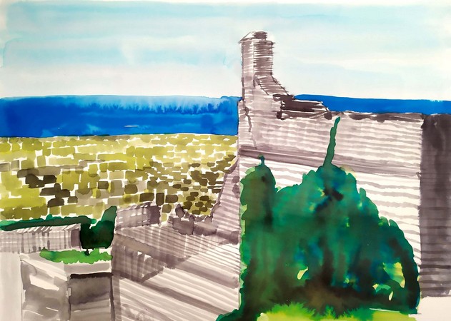 Η Θεσσαλονίκη, η πόλη όπου γεννήθηκε και μεγάλωσε, λειτουργεί ως ένα διακριτικό αλλά σταθερό υπόβαθρο στη δουλειά του. Δεν πρόκειται για την τυπική εικονογραφία των αναγνωρίσιμων ορόσημων, αλλά για κάτι πιο διάχυτο και υπαινικτικό. «Αν ήμουν σε άλλη πόλη, θα ζωγράφιζα κάτι άλλο. Όμως σίγουρα η Θεσσαλονίκη είναι από μόνη της έμπνευση», λέει. «Θα έλεγα ότι με εμπνέει περισσότερο να ζωγραφίζω εικόνες από το κέντρο, το παραλιακό μέτωπο, τον Λευκό Πύργο και τη Ροτόντα, αλλά και την Άνω Πόλη. Όμως ολόκληρη η Θεσσαλονίκη είναι ένα μνημείο από μόνη της. Είναι σταυροδρόμι των Βαλκανίων, κομμάτι πολλών πολιτισμών».