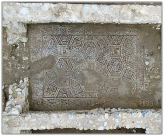 Ιδιαίτερο ενδιαφέρον ανάμεσα στα πλέον πρόσφατα ευρήματα παρουσιάζουν τα τέσσερα δωμάτια με τα ψηφιδωτά δάπεδα που χρονολογούνται στον 5ο-6ο αιώνα μ.Χ. και ανήκουν σε οικοδόμημα εντός του ευρύτερου συγκροτήματος της έπαυλης. Τα δάπεδα κοσμούνται με ποικίλα γεωμετρικά μοτίβα και άνθινο διάκοσμο με ψηφίδες σε κόκκινες, κίτρινες, λευκές και μπλε αποχρώσεις. Η παρουσία τους σε πολλαπλούς χώρους του ίδιου οικοδομήματος αποτελεί ισχυρή ένδειξη του υψηλού βιοτικού επιπέδου των ιδιοκτητών.