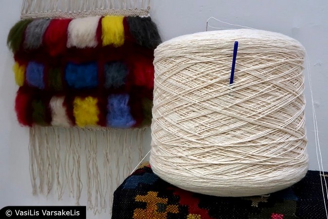 Το μαλλί, υλικό που συχνά θεωρείται απαξιωμένο, περνά από διαδικασίες πλυσίματος, ξανοίγματος, βαψίματος, μετατροπής σε νήμα. Η Μαίρη Γιώτσα έχει δουλέψει με μαλλί σε εικαστικά έργα, σμιλεύοντας γλυπτά, ακόμη και σε συνδυασμό με φύλλο χρυσού.