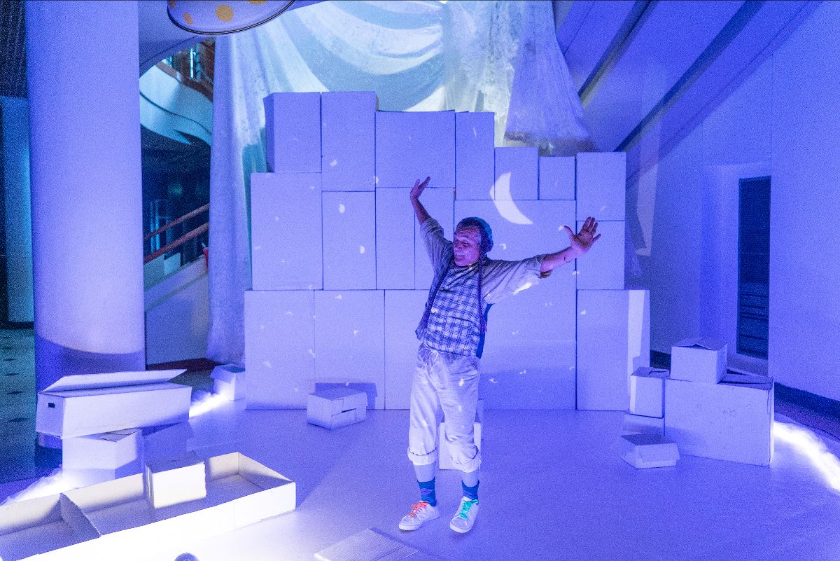 Ένα ανθρωπάκι βρίσκεται ανάμεσα σε λευκά χαρτόκουτα. Όταν προκύψει η ανάγκη να φτιάξει σπιτάκια για το ίδιο αλλά και τους φίλους του, ένας ολόκληρος κόσμος ξετυλίγεται μπροστά του, αφού με τη φαντασία του τα κουτιά αποκτούν χρώμα, μορφή, κίνηση. Η παράσταση υπενθυμίζει την ανάγκη κάθε πλάσματος να φτιάξει τη φωλίτσα του, να κατοικήσει το δικό του «σπίτι» και τελικά να νιώσει ασφάλεια στο καταφύγιο που πλάθει μέσα στον μεγάλο κόσμο.