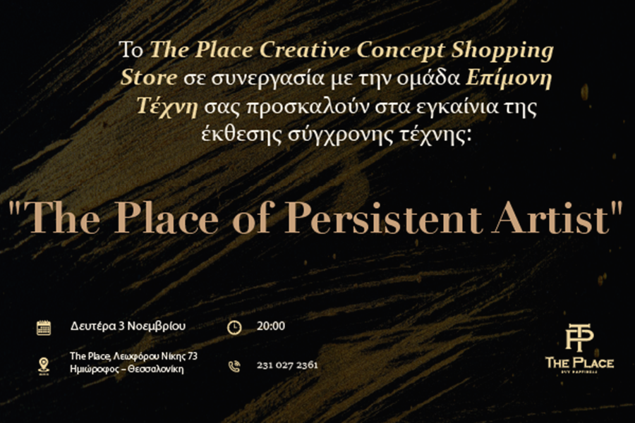 Με την έκθεση “The Place of Persistent Artist”, υπό τη διοργάνωση της Επίμονης Τέχνης, και την επιμέλεια της κα. Χρύσας Μπαρζόκα, το The Place επιβεβαιώνει τον ρόλο του ως πολυδιάστατος χώρος πολιτισμού και αισθητικής, όπου η δημιουργικότητα, η φιλοξενία και η τέχνη συνυπάρχουν αρμονικά, όλα σε ένα μέρος, στο The Place.