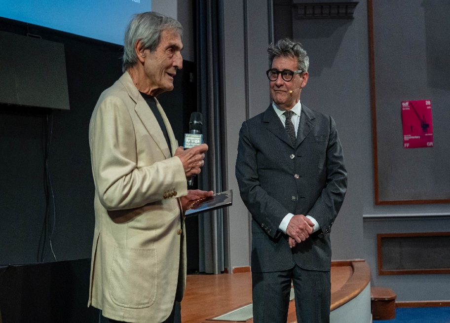 Μετά την απονομή, ακολούθησε η προβολή της ταινίας «Τρέχοντας τα κύματα» για τη ζωή του εμβληματικού παραγωγού, σε σκηνοθεσία Γιάννη Καραπιπερίδη. «Στην ταινία έχουν συμπεριληφθεί κάποια μικρά φιλμάκια που γύρισα όταν ήμουν 20 χρονών, οπότε δείτε τα με συμπάθεια. Ήταν η αιτία που αποφάσισα να μη γίνω σκηνοθέτης αλλά παραγωγός», «προειδοποίησε» αστειευόμενος ο κ. Παπαλιός.