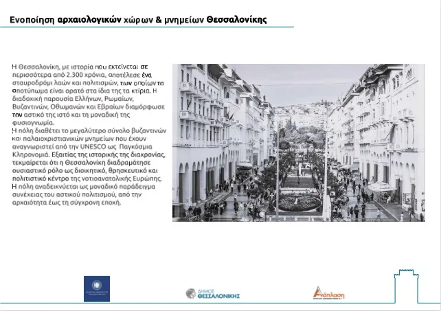 Όπως τόνισε στη συνέχεια ο διευθύνων σύμβουλος της εταιρείας, Χρόνης Ακριτίδης κατά την παρουσίαση της φιλοσοφίας του project, «μέσω αυτής της ολοκληρωμένης προσέγγισης επιδιώκεται η βελτίωση της ορατότητας και της προσβασιμότητας των μνημείων τόσο για τους επισκέπτες όσο και για τους κατοίκους, ενώ παράλληλα προωθείται η αναβάθμιση του ιστορικού κέντρου της Θεσσαλονίκης».