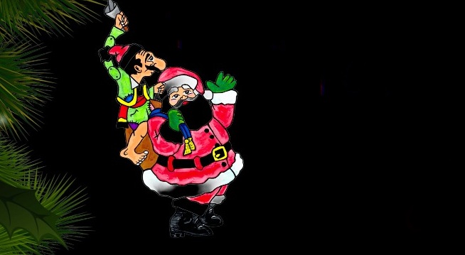 Μια γιορτινή ιστορία στο πνεύμα των Χριστουγέννων. Ο Άγιος Βασίλης με το έλκηθρό του εμφανίζεται στον μπερντέ, τα ξωτικά και οι καλικάντζαροι εισβάλλουν στο σκηνικό και ο Καραγκιόζης… ντύνεται Άη Βασίλης!