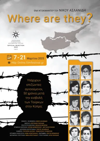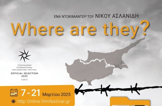 Το ντοκιμαντέρ “Where are they?” παρουσιάζει συγγενείς των αγνοουμένων στην Ελλάδα και στην Κύπρο που δεν έπαψαν ποτέ να αναζητούν την τύχη των δικών τους ανθρώπων.
