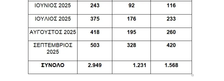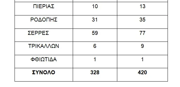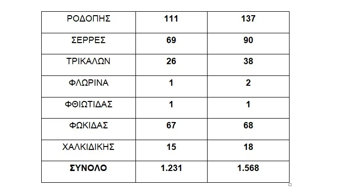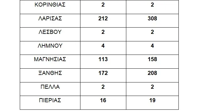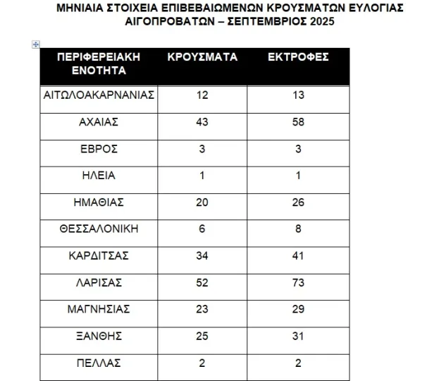 Η περιοχή που κατέχει την πρωτιά σε συνολικό αριθμό κρουσμάτων πανελλαδικά, είναι αυτή της Λάρισας με 212, ενώ αυτή των Σερρών είναι με τα περισσότερα τον Σεπτέμβριο του 2025, καθώς έφτασαν τα 59.