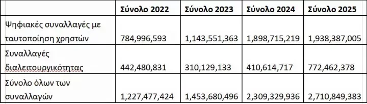 Ειδικότερα η εξέλιξη των πλήθους των ψηφιακών συναλλαγών από το 2022 έχει ως εξής: