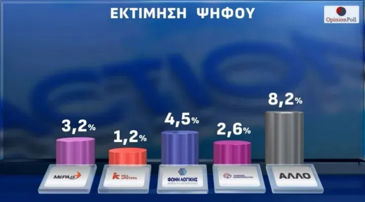Η αποκαλούμενη «γκρίζα ζώνη» (οι αναποφάσιστοι μαζί με όσους επιλέγουν μικρότερα κόμματα) εκτοξεύεται στο 26%.